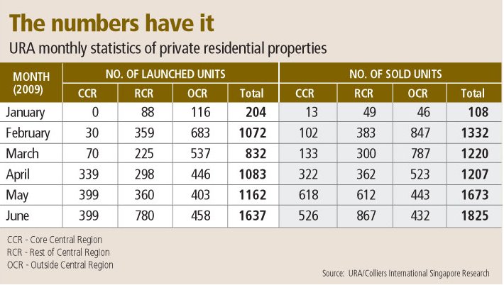 In the first half of 2009, developers sold more than 7,300 units in all. If this momentum is sustained, new home take-up for the full year will exceed 14,000 units.