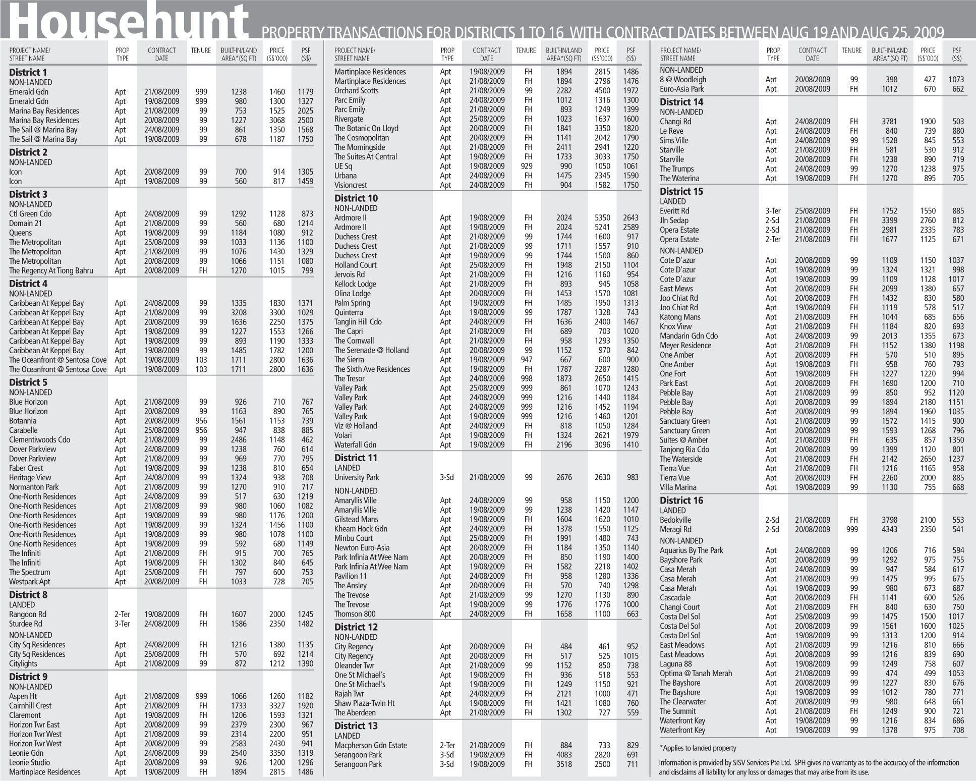 Property transactions for district 1 – 16 with contract dates between Aug 19 and Aug 25, 2009