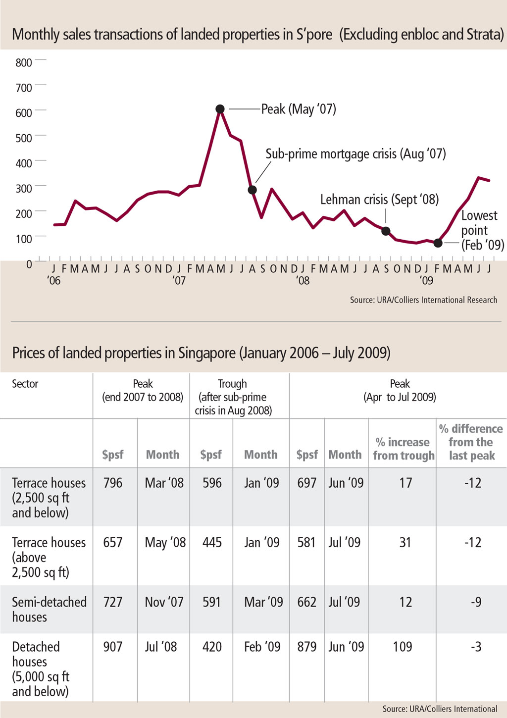 Landed home prices had peaked between late 2007 and the first part of 2008 before trending down as the sub-prime debacle hit.