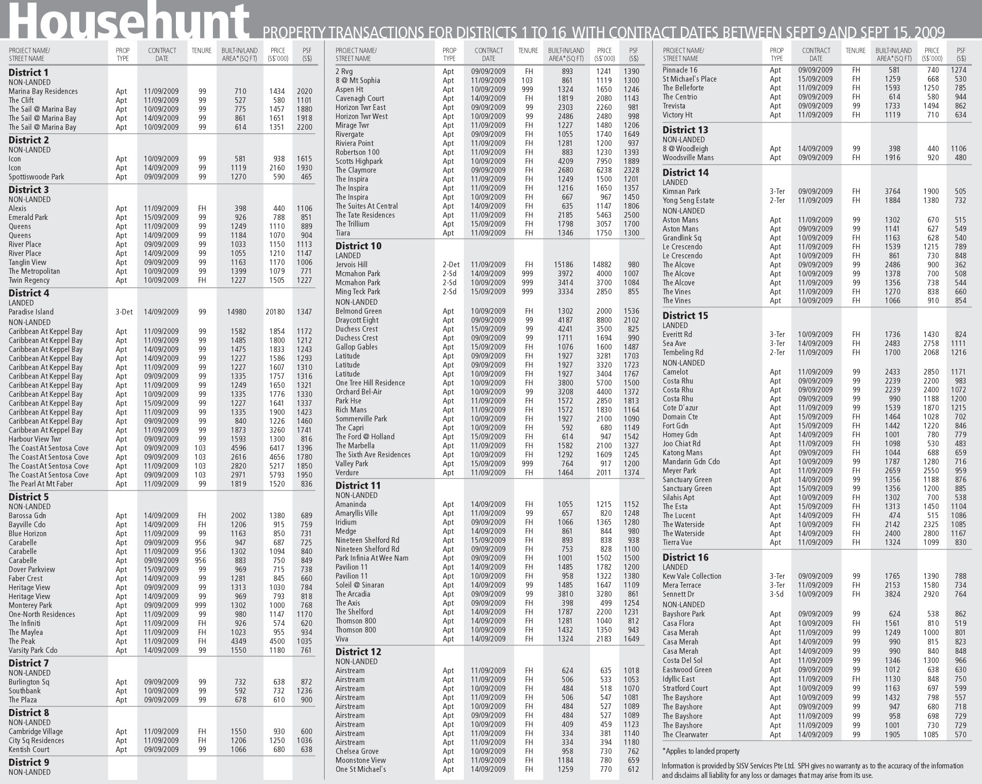 Property transactions for district 1 – 16 with contract dates between Sep 9 and Sep 15, 2009