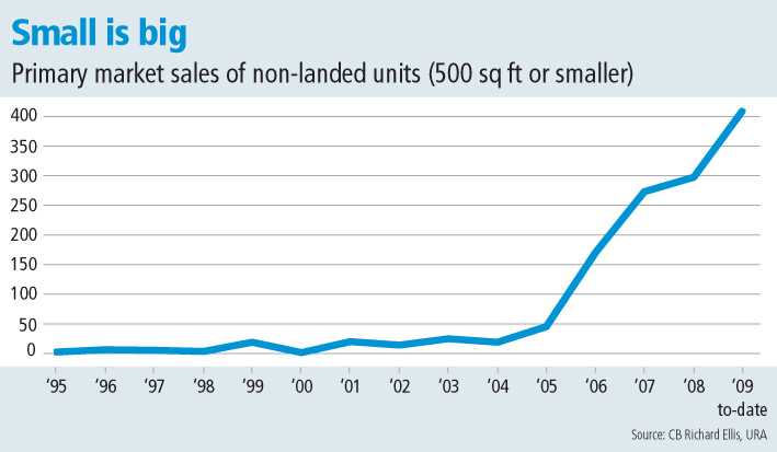 ‘Developers are providing more of these small-format units and home-buyers are snapping them up, especially in 2009,’ said CBRE Research executive director Li Hiaw Ho. ‘The rise of small-format units has served to bolster overall transaction volume in the residential market.’