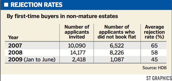 HDB’s figures show home-seekers like Mr Ng are quite common. In its sale exercises from the first half of this year, an average of 45 per cent of first-time buyers did not pick any of the flats they were offered in non-mature estates.