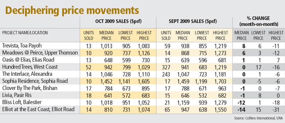 In the first 10 months of this year, developers have sold 13,639 units. Views in the market are mixed whether developers will manage to sell another 1,172 units in the final two months of 2009 to match the record of 14,811 units in 2007.