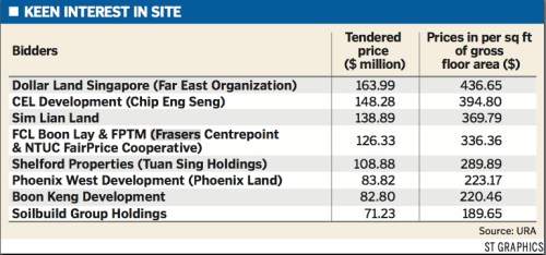 It offered nearly $164 million, or $436.65 per sq ft (psf) of gross floor area, about 10 per cent more than the $148.28 million or $394.80 psf offered by second-placed Chip Eng Seng’s CEL Development.