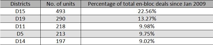 Looking at en-bloc transactions since 2009, my research team at Ascendant Assets found that the top five districts that had the highest number of en-bloc transactions are as follows.