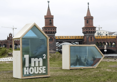 The One Square-Meter House is exactly what it sounds like — a tiny structure that provides just enough room to sit or, when tilted on its side, to lie down and sleep.