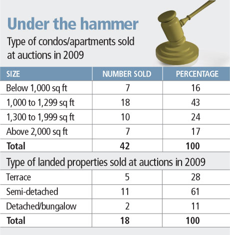 Mirroring the buoyant sales in the primary residential market, residential properties at auctions saw a 250 per cent jump in sales value in 2009. The figure soared from $25.2 million in 2008 to $88.4 million last year.