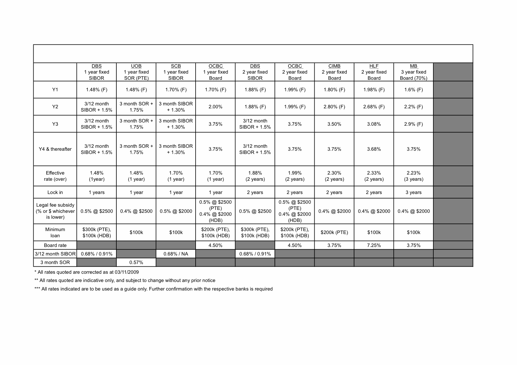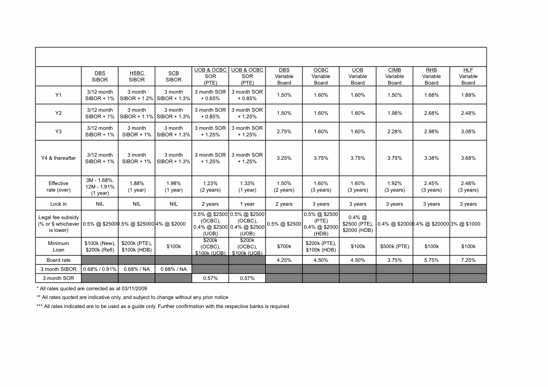 *** All rates indicated are to be used as a guide only. Further confirmation with the respective banks is required.