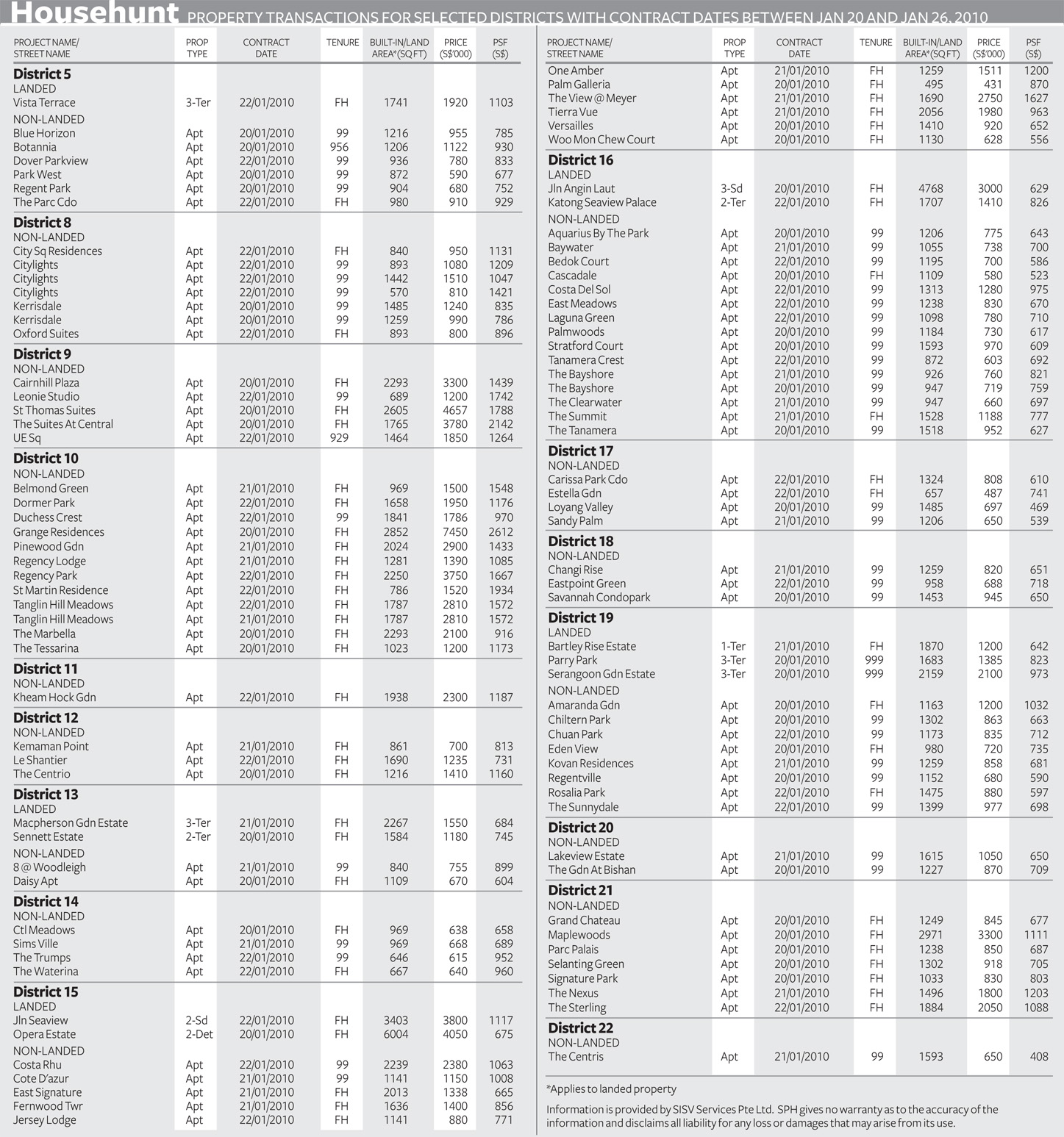 Property transactions for selected districts with contract dates between Jan 20 and Jan 26, 2010